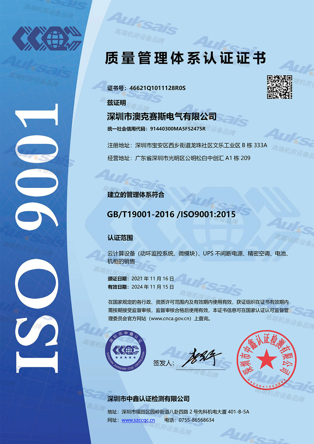 质量Q中文证书